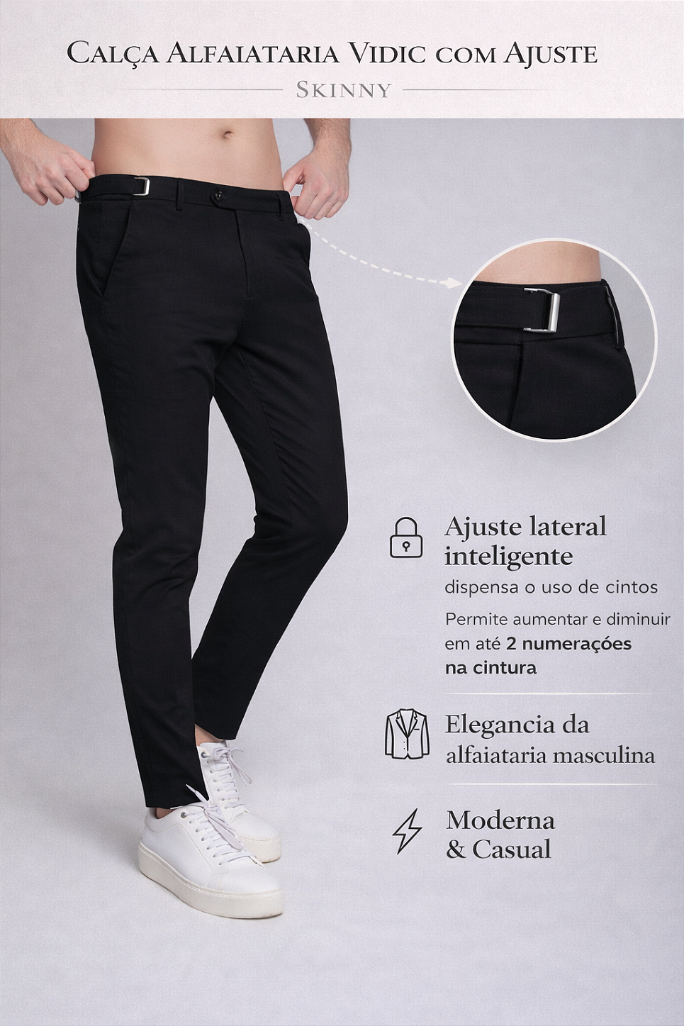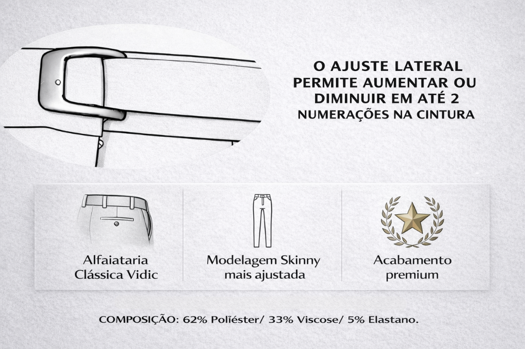 Calça Alfaiataria com Ajuste Preta Vidic Skinny