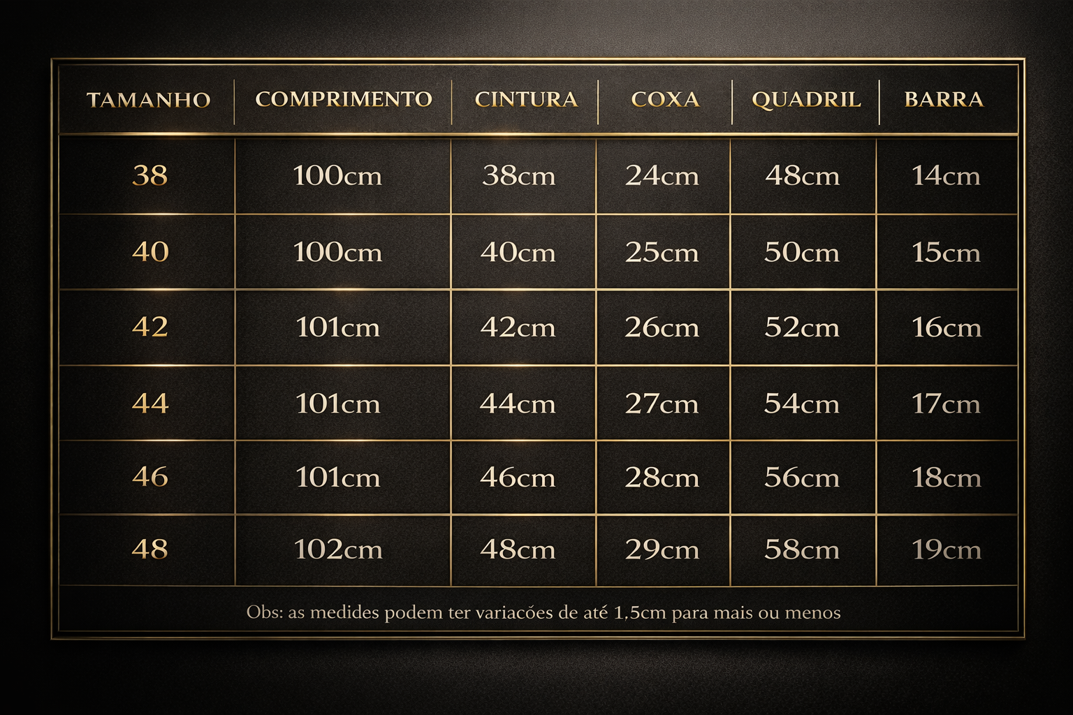 Selecione a opção de Tamanho: