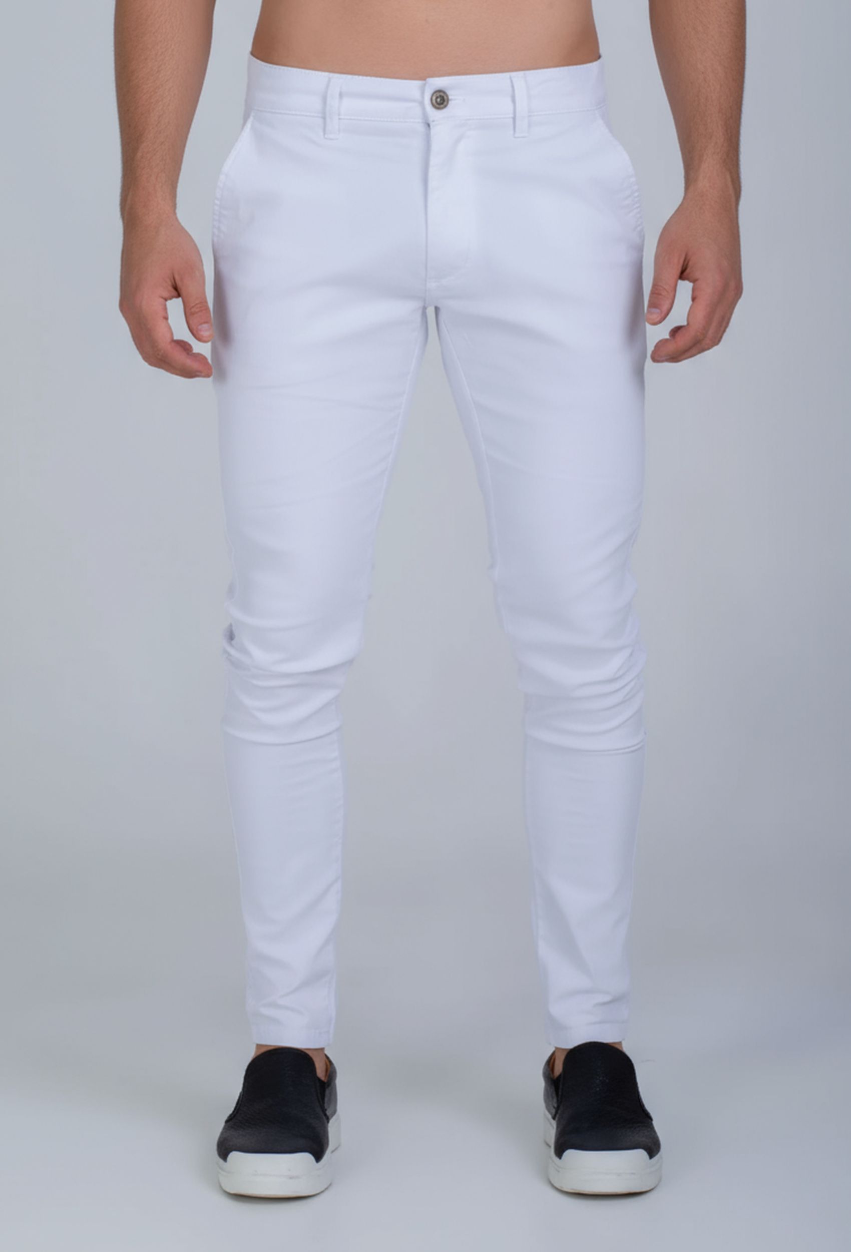 Feita de sarja premium com elastano, garantindo conforto e estilo.