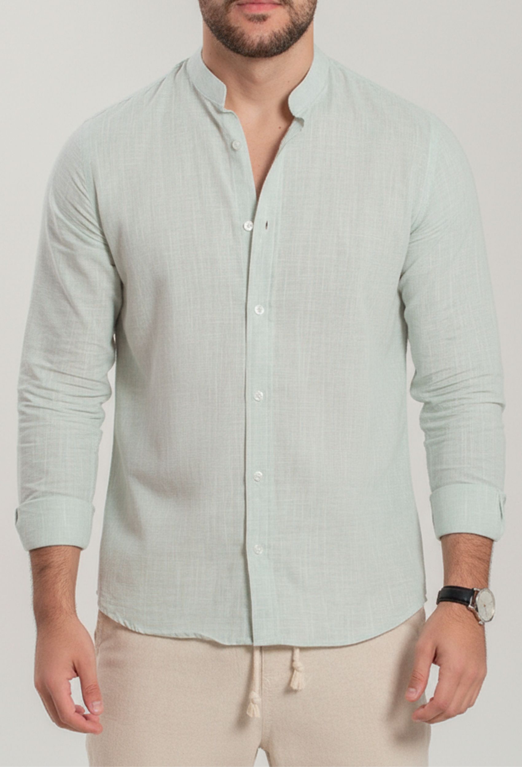 A Camisa Gola Padre Linho Verde ML combina a tradição do linho, um dos tecidos mais antigos e respeitados, com a modernidade da nossa modelagem Slim Fit. Confeccionada com um mix de fibras naturais (55% algodão, 30% viscose e 15% linho), proporciona um visual alinhado e sofisticado, ao mesmo tempo que garante conforto e um toque suave.