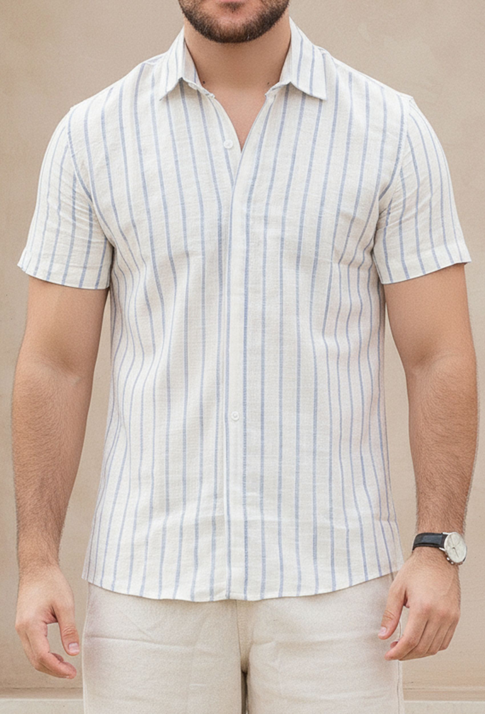 Combina a tradição do linho, um dos tecidos mais antigos e respeitados, com a modernidade da nossa modelagem Slim Fit. Confeccionada com um mix de fibras naturais (55% Linho e 45% Algodão), proporciona um visual alinhado e sofisticado, ao mesmo tempo que garante conforto e um toque suave.