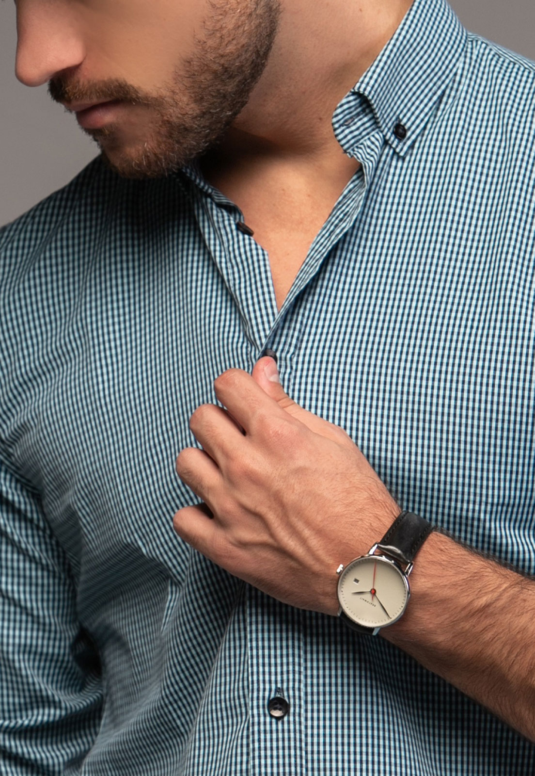 O padrão xadrez e a modelagem Slim fazem dessa camisa uma escolha fácil para qualquer ocasião.