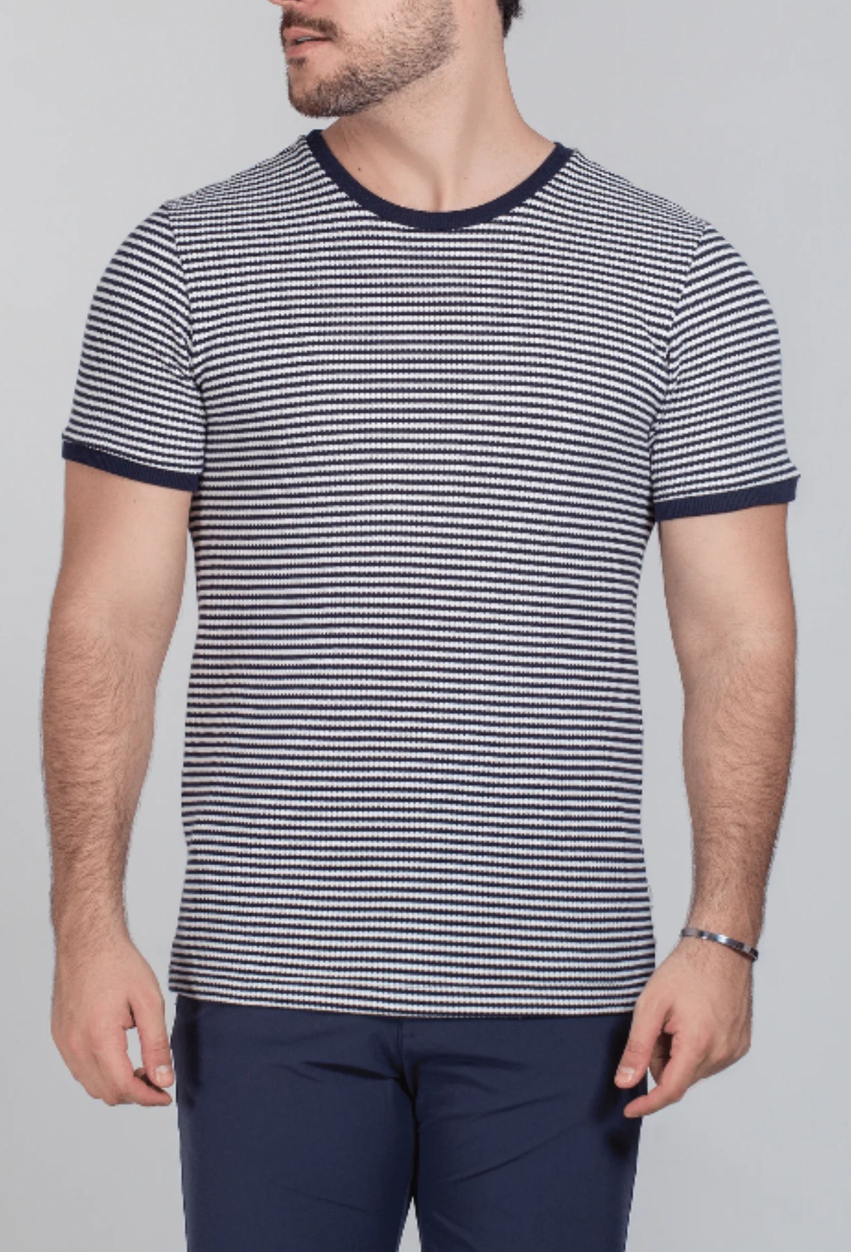 A Camiseta Listrada Navy Vidic possui uma padronagem moderna e listrada, que combina tons de navy para um visual contemporâneo e cheio de estilo. Ideal para quem busca um look atual e despojado.