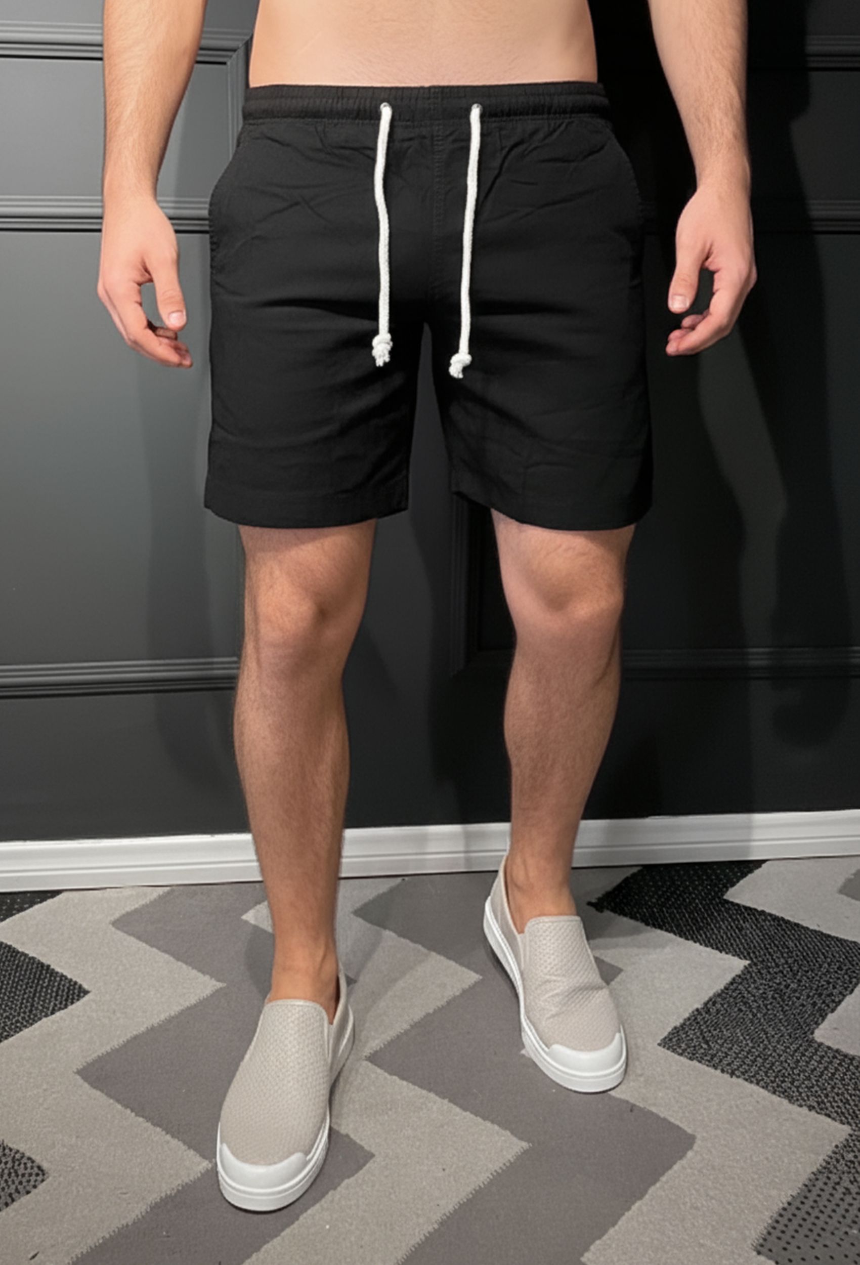 Versatilidade: Combine os shorts com uma camiseta básica para um look casual ou com uma camisa social para ambientes diurnos mais sofisticados. O design atemporal permite diversas combinações para diferentes momentos.